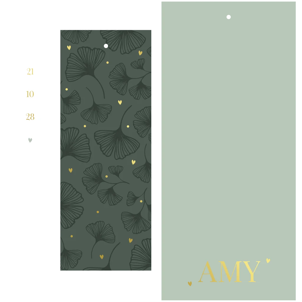 Een geboortekaartjes label dat bestaat uit drie losse kaarten. Er zitten al gaatjes in. Je houdt de kaarten bij elkaar met een splitpen of een mooi lintje. Dit zit er niet bij maar kun je mee bestellen op de pagina 'extra's'.