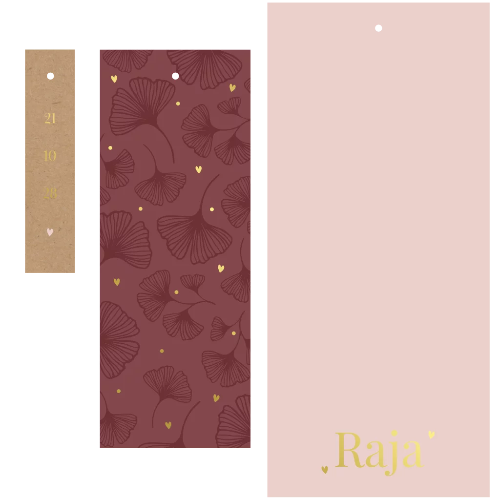 Een geboortekaartjes label dat bestaat uit drie losse kaarten. Er zitten al gaatjes in. Je houdt de kaarten bij elkaar met een splitpen of een mooi lintje. Dit zit er niet bij maar kun je mee bestellen op de pagina 'extra's'.