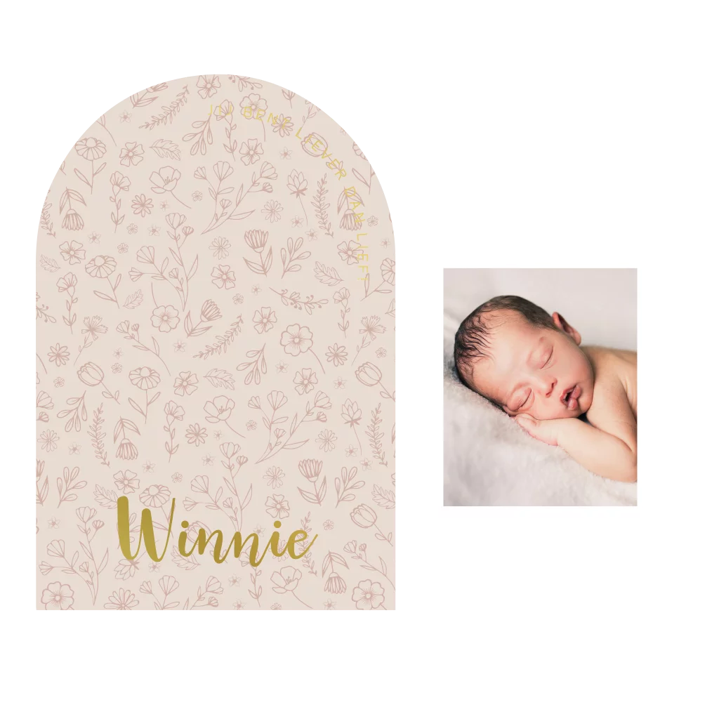 Uniek boogvorm geboortekaartje met stans en losse kaartjes