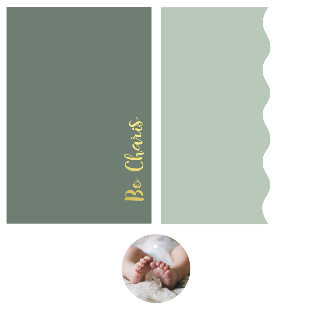 Geboortekaartje met rond fotolabel en golfrandje