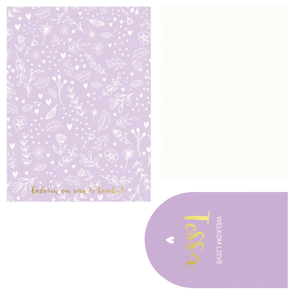 Een uniek geboortelabel dat bestaat ui drie losse delen. Je maakt de delen aan elkaar vast met een mooie paperclip.