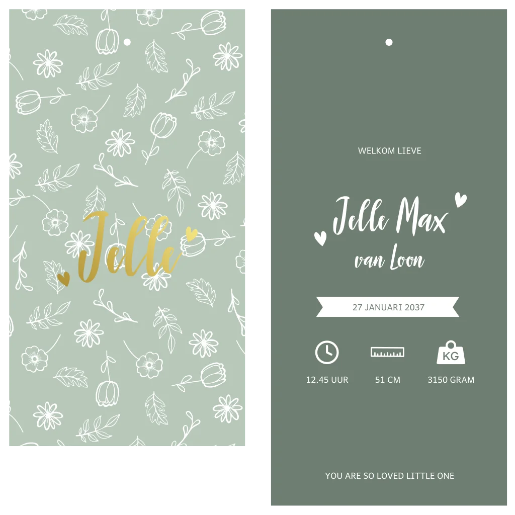Welkom in de wereld van Villa Pluis! Dit geboortekaartje is de ideale manier om het wonder van de geboorte van je baby aan te kondigen. Met het schattige en unieke ontwerp van Villa Pluis, geef je een speelse en lieve draai aan je geboortekaartjes, die perfect passen bij het begin van een nieuw avontuur.