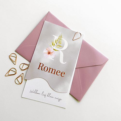 Een mooi, enkel labelkaartje dat op beide kaartjes is afgewerkt met foliedruk. Het voorste kaartje heeft een golfrandje aan de onderkant, waardoor je het achterste kaartje al kunt zien. Je verbindt de kaartjes door een paperclip of maak een gaatje in de kaarten en doe er een lintje door.
