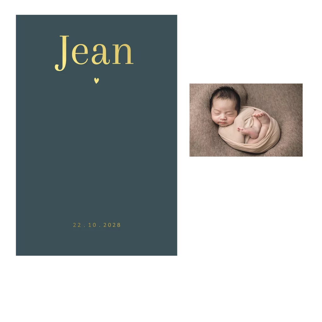 Op zoek naar een prachtig geboortekaartje voor jullie kindje? Dit kaartje is een uniek en luxe ontwerp. Met prachtige details zoals foliedruk en een minimalistisch en klassiek ontwerp, zal dit geboortekaartje zeker de aandacht trekken. De rustige en lieflijke uitstraling maakt dit geboortekaartje perfect voor ouders die op zoek zijn naar een origineel en stijlvol geboortekaartje voor hun zoontje. Het toevoegen van een losse foto geeft het geboortekaartje een extra luxe uitstraling, waardoor het een blijvende herinnering wordt aan de geboorte van jullie kindje.