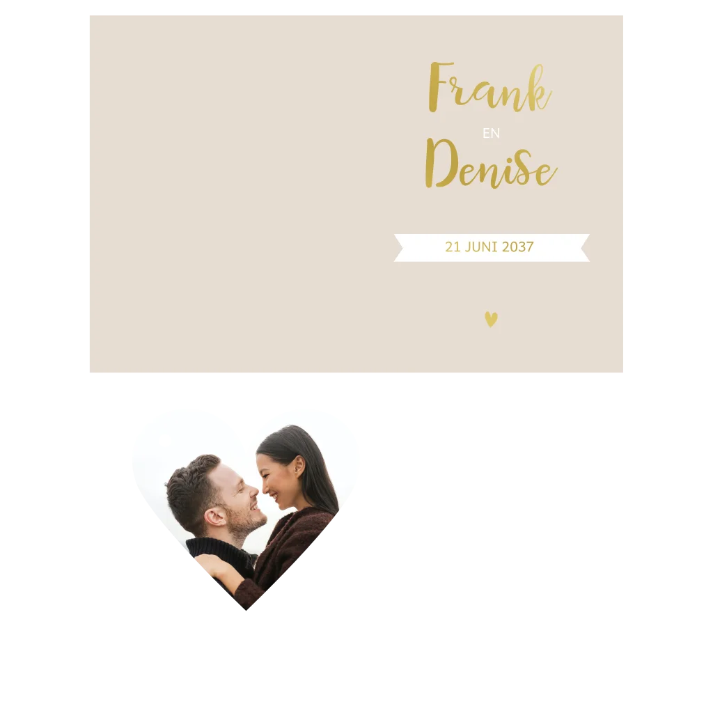 Een uniek save the date kaartje met losse foto. In de foto zitten al gaatjes. Met een mooi lintje kun je de foto vastmaken aan de kaart. Het gehele kaartje is naar wens aan te passen.