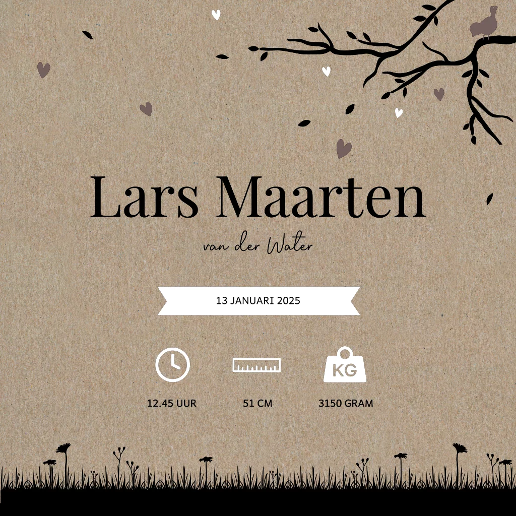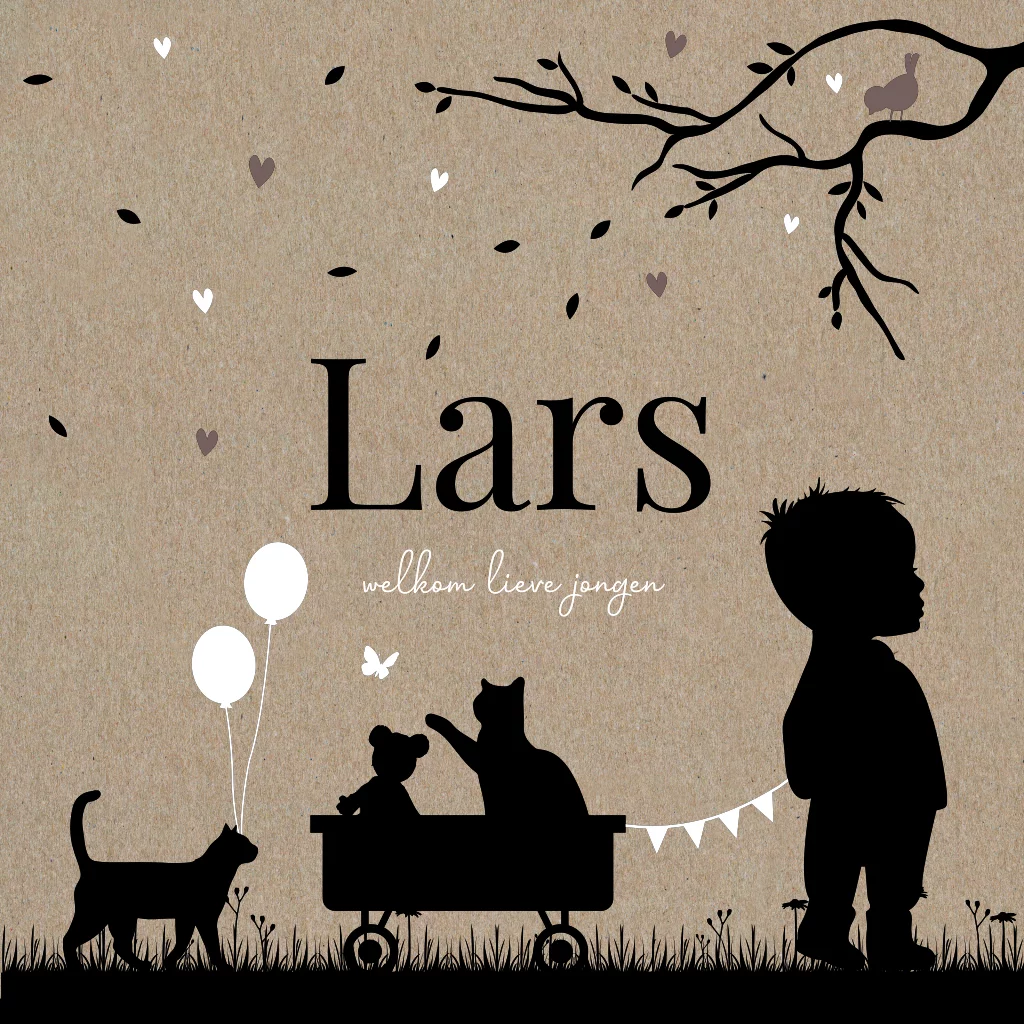Een uniek geboortekaartje voor een jongen met silhouette op kraftpapier. Het kaartje is helemaal aan te passen naar jouw situatie, dus stuur me gerust een berichtje als ik dit kaartje voor je kan omzetten. Je vindt het dan terug in je account, waar je vervolgens zelf de naam en andere tekst kan toevoegen.