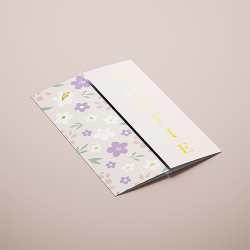 Uniek luikvouw geboortekaartje met bloemen en luxe foliedruk