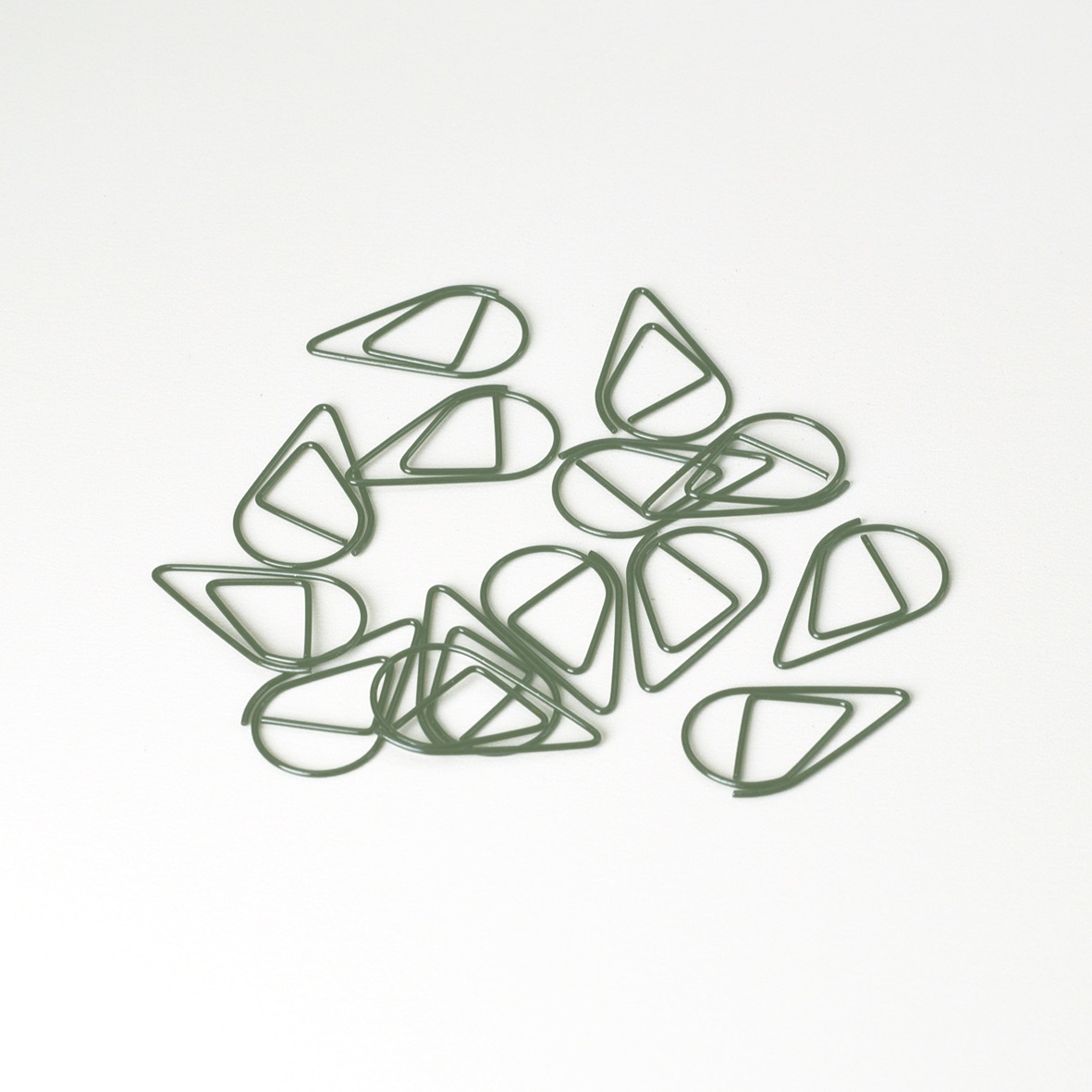 Druppelvormige, eucalyptuskleurige paperclips (25)