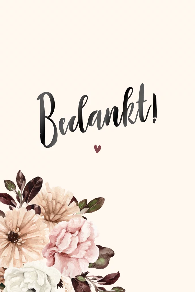 Een rechthoekig bedankkaartje voor na de trouwdag. Het ontwerp is naar wens aan te passen.