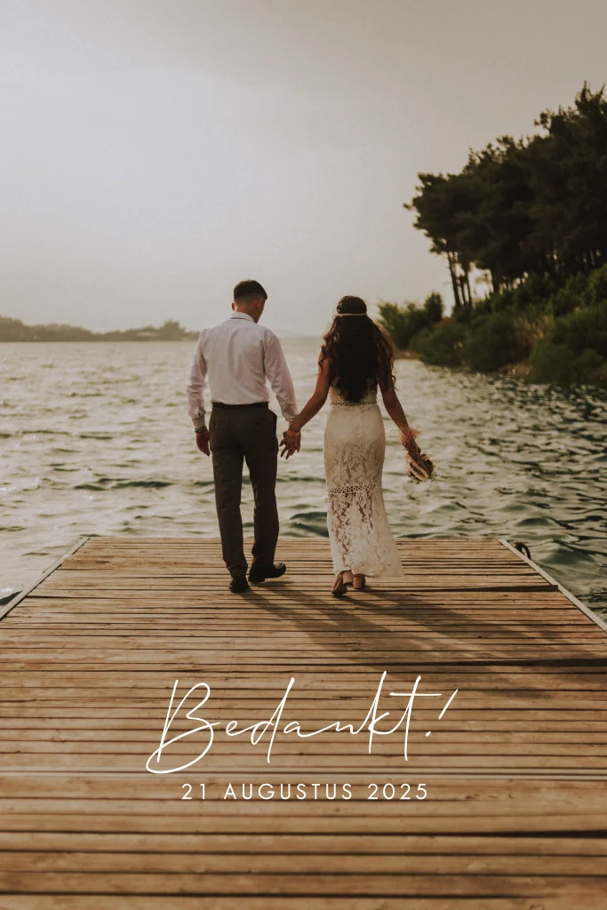 Een kaartje met een foto van jullie mooiste dag. Het is een enkel, rechthoekig kaartje en de foto is te vervangen.