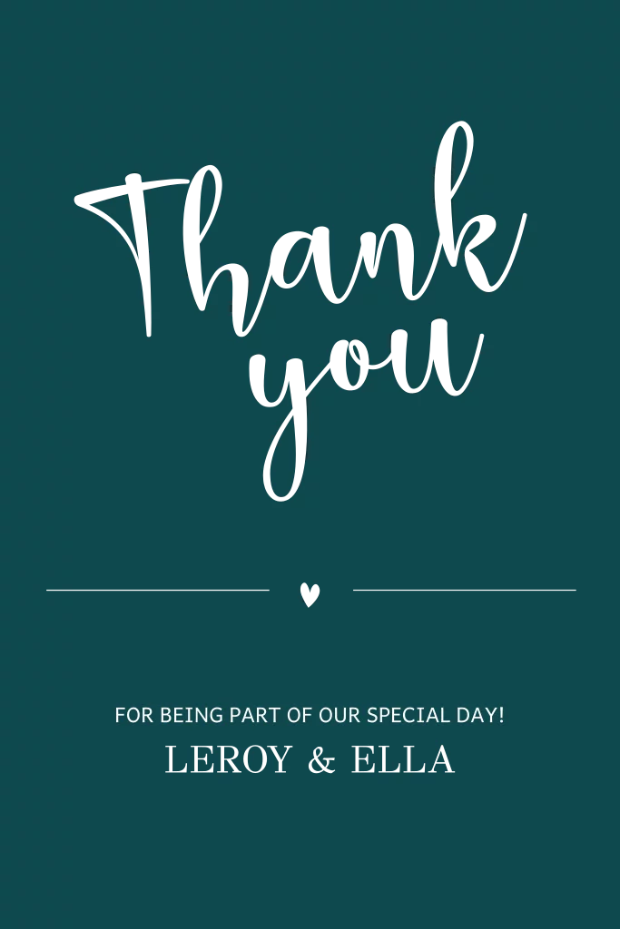 Rechthoekig bedankkaartje met donker turquoise en rosefolie