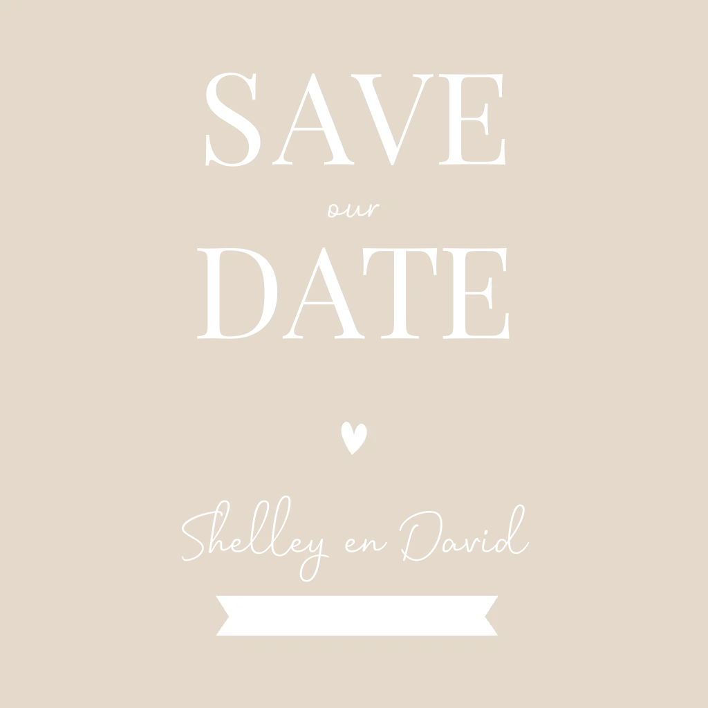 Een enkele, vierkant save the date met een boog en goudfolie. Het hele kaartje is naar wens aan te passen. Bij dit ontwerp kaart is er ook een bijpassende trouwkaart en naamkaartjes.