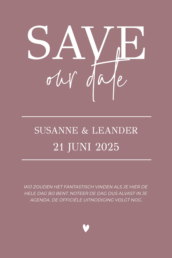 Een save the date kaartje met ronde hoeken en foliedruk. De achterkant is leeg en kun je zelf vullen met meer tekst als dat nodig is. Villa Pluis ontwerpt écht unieke en originele trouwkaarten, die je niet zo snel ergens anders zal vinden. Alle kaartjes zijn naar wens aan te passen. Dit kun je zelf doen met de handige online ontwerp editor, maar wij kunnen je ook (gratis) helpen. Bestel daarna snel een proefdruk om het kaartje in het echt te zien!