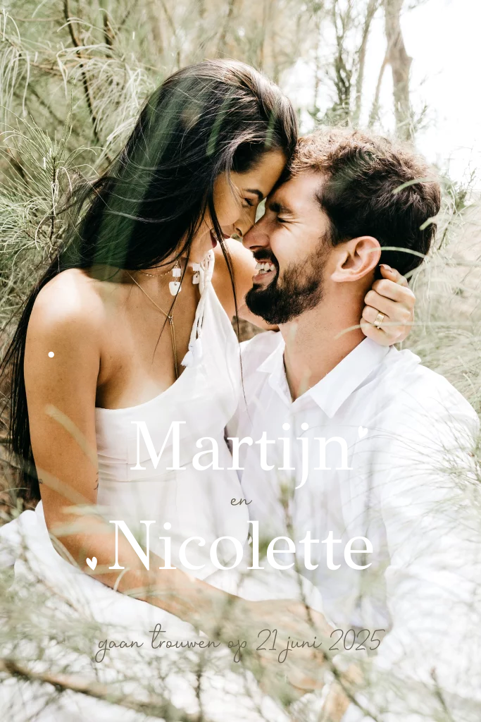 Een enkele save the date kaart met foto en foliedruk. Deze save the date kaart past heel mooi bij de trouwkaart met zandkleur en de bijbehorende losse labels.