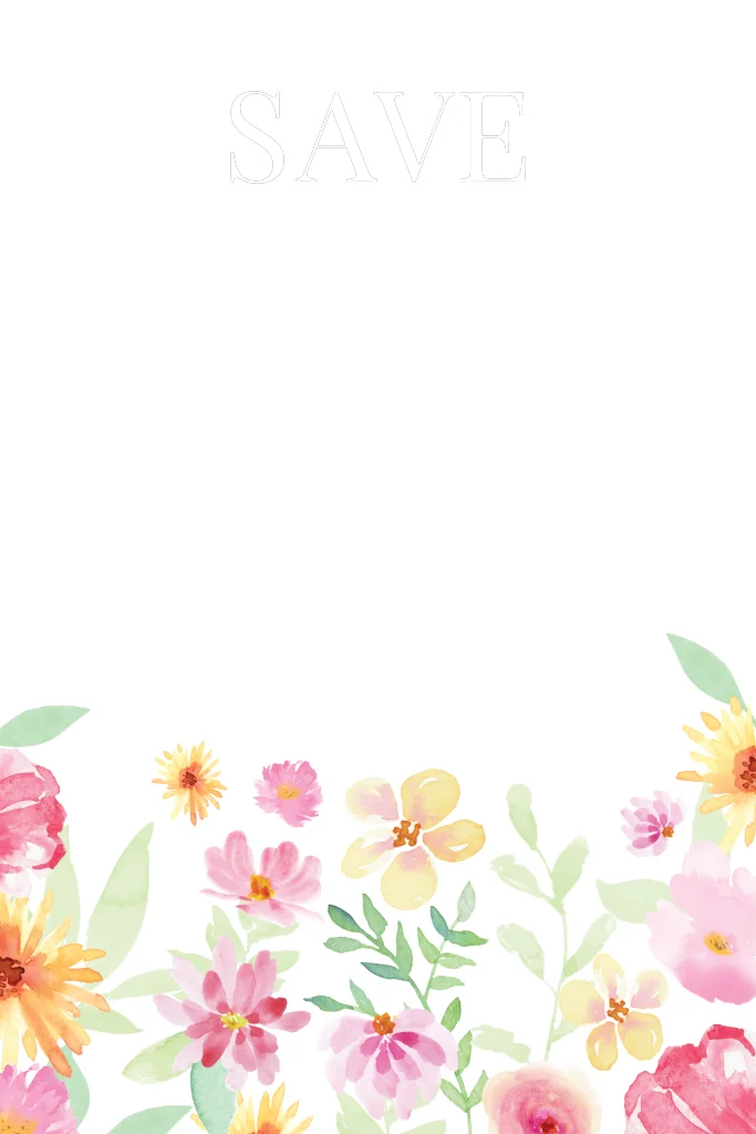 Een elegante save the date kaart met een witte achtergrond en mooie waterverf bloemen. Het kaartje is volledig naar wens aan te passen.