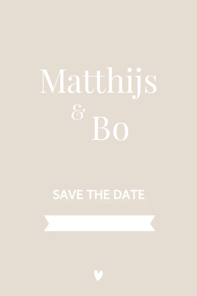 Een enkele save the date kaart met mooie neutrale tinten en goudfolie. Het hele kaartje is naar wens aan te passen. Bij dit ontwerp kaart is er ook een bijpassende trouwkaart.