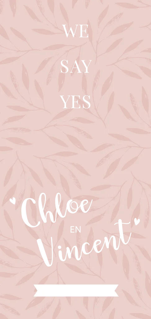 Een langwerpige, enkele trouwkaart met op de voorkant een takjesprint. Het kaartje is aan allebei de kanten afgewerkt met spotlak en is geheel naar wens aan te passen.