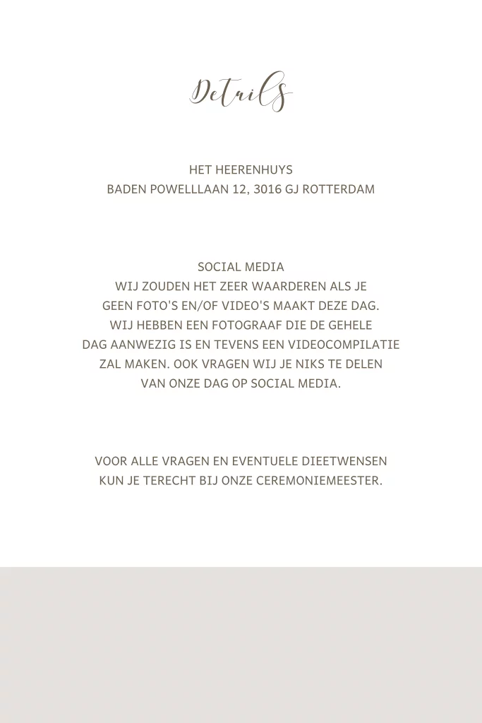 Een enkel, wit details kaartje om in een pocketfold mapje te schuiven. Om de pocketfold compleet te maken zijn er ook nog de basiskaart en het programmakaartje. Snijd het grijze gedeelte van de kaart en hij past perfect voor het programmakaartje.