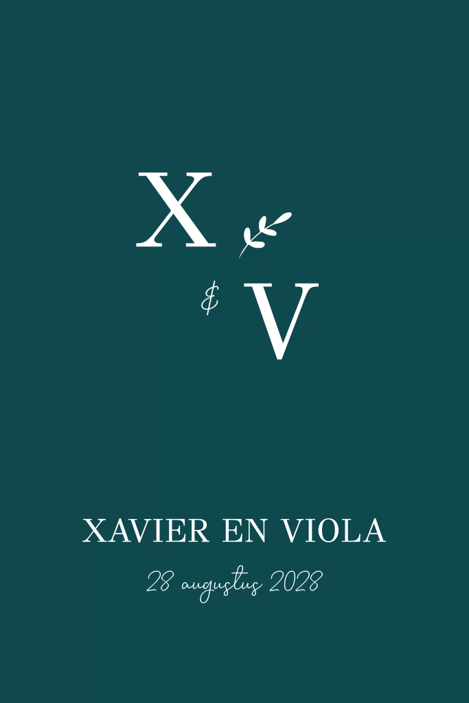Een gevouwen trouwkaart met ronde hoeken. Op de voorkant staan de initialen welke je zelf kunt aanpassen naar die van jullie. Het kaartje is afgewerkt met foliedruk. Voor deze trouwkaart is er ook een bijpassende save the date kaart.