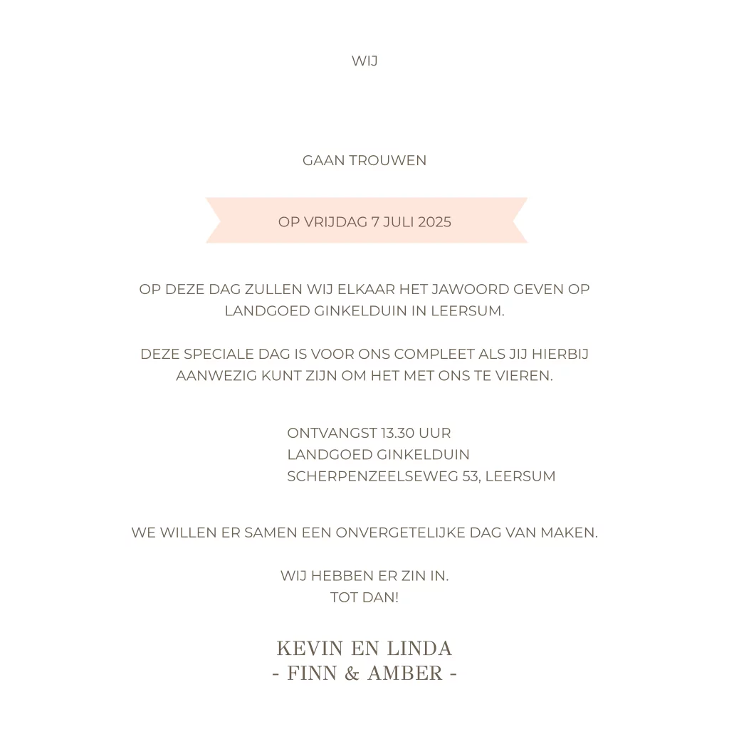 Liever helemaal geen werk aan de trouwkaart? Kies dan voor een ontwerp op maat.